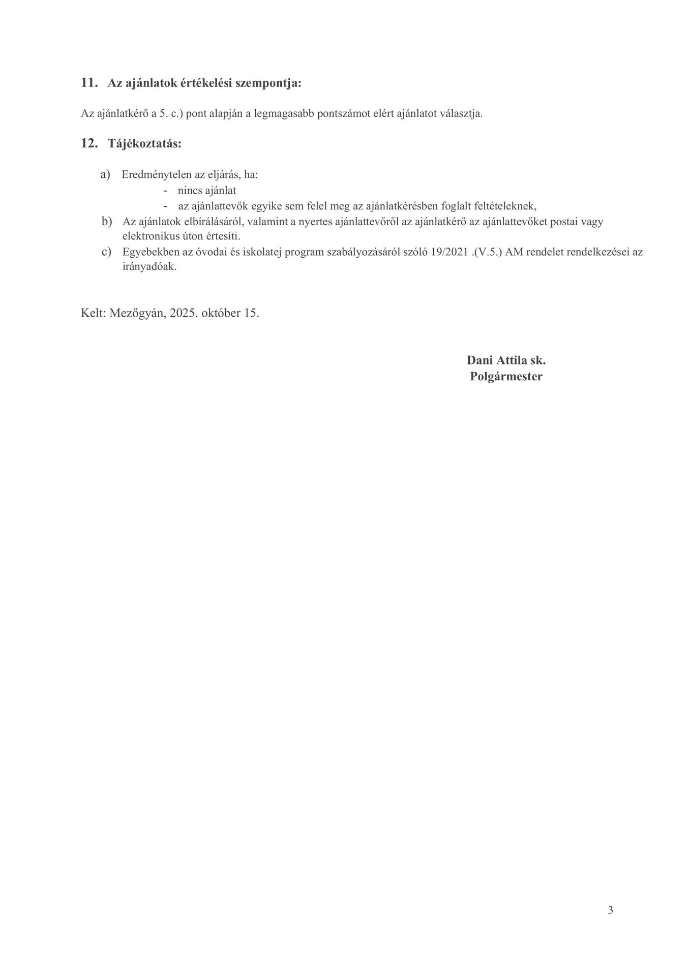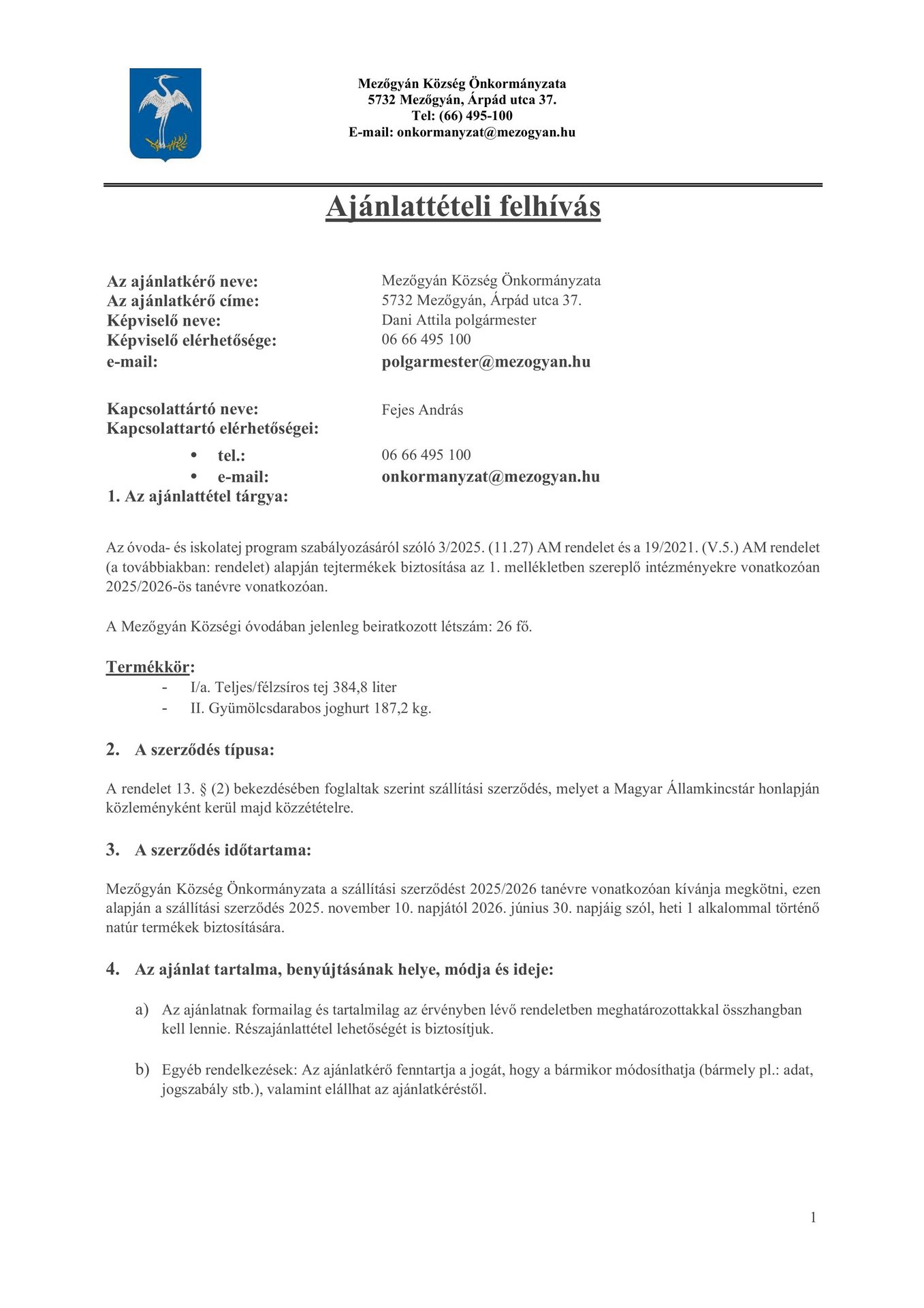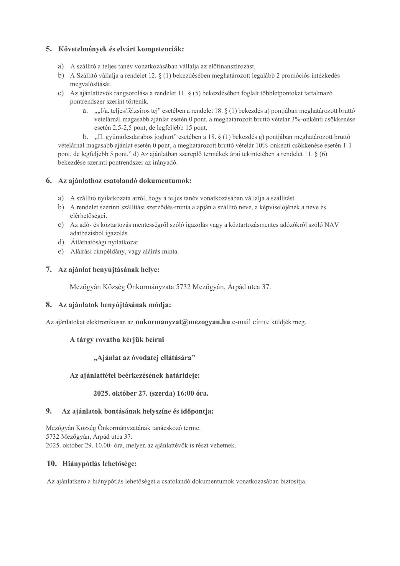 Ajánlattételi felhívás